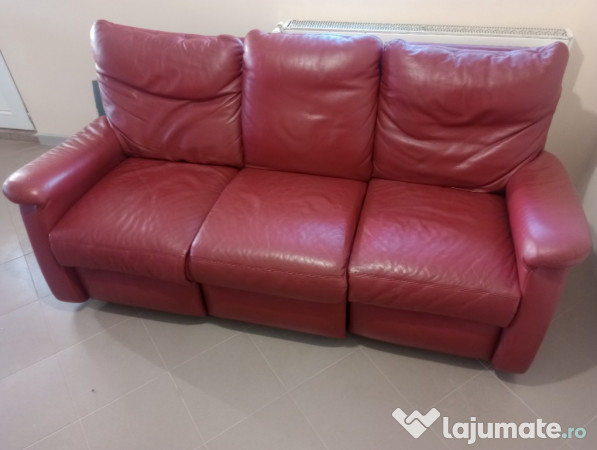 Vând canapea piele cu recliner in stare buna.Ofer transport zona Ilfov, București contra cost.