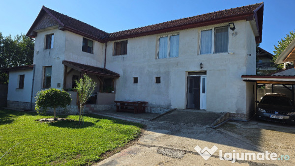 Vand casa in Deva, zona Zavoi, P+E, constructie din BCA si boltari, izolata exterior, renovata integral si contructie etaj in anul 2011 (primul nivel a fost construit in anul 1989), acoperita cu pod si tigla ceramica, suprafata construita 262 mp, amprenta la sol de 147 mp. suprafata totala de teren 1054 mp, deschidere la strada de 22 metri liniari, acces auto in curte, amenajata modern, incalzire cu centrala termica pe lemne cu pufar si boiler pt. apa calda de la centrala si electric, semineu, tamplarie PVC cu geam termopan normal si tripan, usi interioare din PVC, gresie, faianta, parchet. La parter este compusa din: living, bucatarie, dormitor, baie, camera tehnica, camara, dresing, 2 terase si garaj deschis pentru 2 masini. La etaj din: 3 dormitoare, birou, baie si hol. Curtea este ingradita, partial pavată, dispune de magazie de lemne, padoc pentru caine si gazon. Proprietatea se vinde partial mobilată. Utilitati: apa, canalizare, curent, internet trase in casa si gazul la poarta. Pret: 235 000 euro neg. Tel: 0724 293226. Mai multe poze VIDEO si detalii pe www.apartamentedeva.ro sau la Agentia imobiliara Ovidiu Deva.
