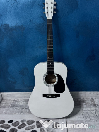 Chitară nu are o coardă și este puțin fisurată , dar nu afectează chitara , pentru mai multe detalii puteți suna ori trimite mesaj