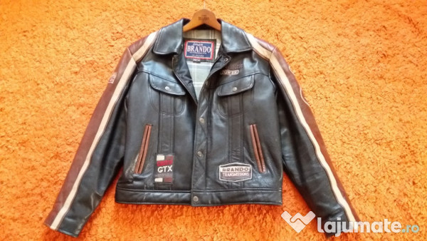 Vand geaca din piele multicolor BRANDO ( LONDON ), original ( autentic ), cu blazon, purat o singura data, stare impecabila.