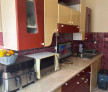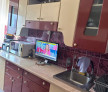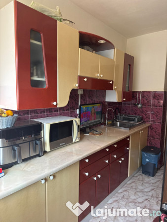Mobilă de bucatarie in stare buna,de culoare grena cu bej.dulapuri suspendate de lungime 2,20 iar dulapurile de jos lungime 2,80