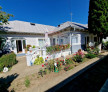 -Curte frumos amenajată, cu zone verzi, flori, pomi și alei pavate
