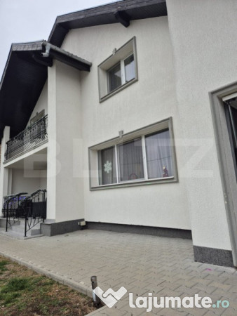 Parterul este compus din living generos, bucatarie mare complet mobilata la comanda, camara, debara, baie cu dus si hol de acces.
