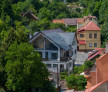 Deschiderea de pe strada Traian Demetrescu, urmată de aleea pietruită ce străbate grădina, te poartă către o construcție elegantă, situată strategic în cel mai înalt punct al proprietății, de unde se deschide o panoramă impresionantă asupra centrului istoric al Brașovului.