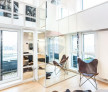 Pereți de oglindă integrați arhitectural: Tavan înalt, ferestre înalte, zone vitrate largi și oglinzi perfecte, alese atât estetic cât și funcțional. Amplifică lumina naturală, creează volum și dinamism vizual, scot în evidență designul interior.