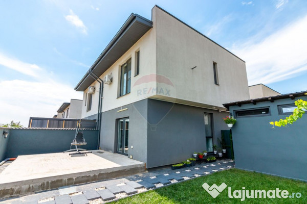 Terenul total are 200 mp, cu o curte suficientă pentru relaxare, grădină sau spațiu de joacă.