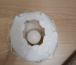 Lampă albă elegantă, cu un design modern. Corpul este format din elemente decorative în formă de petale, care creează o atmosferă plăcută.