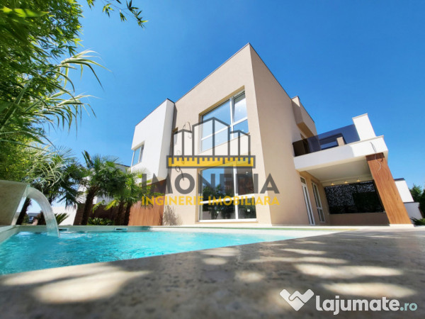Vila din galeria foto, finalizata in 2025, poate fi solutia cautarilor tale. Arhitectura Mediteraneana si peisagistica au fost armonizate in asa fel incat sa te simti ca in vacanta de fiecare data cand ajungi acasa. Iar piscina exterioara iluminata RGB, impreuna cu iluminatul arhitectural, prezent atat pe fatada, cat si in curte, completeaza peisajul mai ceva ca la "Insula Iubirii". :p