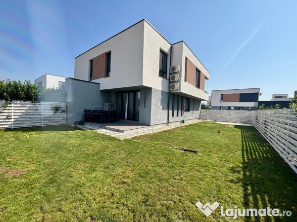 Vilă modernă cu 4 camere, situată în complexul rezidențial The Class Villas 1, pe Strada Alexandru Ioan Cuza, Tunari. Proprietatea se află la doar 3 minute de mers cu mașina de Școala Americană, într-o comunitate securizată (gated community), ideală pentru familii. Caracteristici: Suprafață desfășurată: Parter + Etaj = 125 mp Compartimentare: living generos, bucătărie deschise, 3 dormitoare, 3 băi 3 aparate de aer condiționat Bucătărie complet utilată și mobilată 2 locuri de parcare incluse Avantaje: Complex rezidențial modern, cu acces securizat Zonă liniștită, cu acces rapid către Școala Americană, Pipera și nordul capitalei Locuință luminoasă, spațioasă, ideală pentru familii Vila este disponibilă imediat pentru închiriere și se predă complet finisată și utilată, oferind confort și siguranță într-un cadru rezidențial premium.