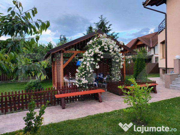Construcția este solidă, din beton armat și cărămidă Poroterm de 30 cm, având o izolație exterioară eficientă de 10 cm. In curte gasim amenajat un foisor spatios, ideal pentru serile de vara si relaxare. Curtea amenajata cu gazon si pavele de cele mai inalta calitate. De asemenea in curte se gaseste o livada cu diverse soiuri de pomi fructiferi si un spatiu de depozitare pentru lemne, care este pozitionat in apropierea camerei tehnice pentru comfortul viitorului proprietar.