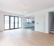 Parter = living, bucatarie open space ce poate fi inchisa, birou, baie, terasa de 26 mp, debara, scara interioara, hol, acces.