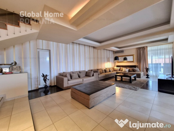 Vila - Tip Duplex cu 6 camere spatioase si 4 bai cu suprafete generoase. Proprietatea este dispusa pe 2 etaje avand o amprenta la sol de 180mp2 inconjurata de un teren generos de 1016Mp. Toate camerele de noapte au baie proprie.
