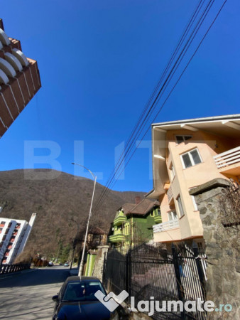 Blitz, va propune o vila cu 7 camere din care 6 dormitoare, 4 bai, o bucatarie si 2 garaje in statiunea Baile Herculane. Aceasta poate fi folosita atat ca si casa de vacanta sau pensiune. Situata intr-o zona foarte buna, ofera liniste, aer curat cat si o vedere extraordinara pentru iubitorii de natura. Proprietatea se preda mobilata si utilata. Dispune de centrala termica de la Viessman pe lemne, si toata ultilitatile. Pentru mai multe detalii, nu ezitati sa ne contactati.