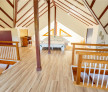 Mansarda: este locuibila, cu o sprafata de 106 mp, open space, prevazuta cu doua birouri, 3 paturi si spatii de depozitare la scafa.