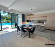 Imobilul are finisaje de cea mai buna calilate, tamplarie Salamander 7 camere cu geam tripan, balustrada din sticla, incalzire in pardoseala pe pompa de caldura, poarta si usa garaj automatizata.