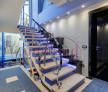Din vestibul, pe scara principala, lucrata in fier forjat si sticla de un artist plastic, se face accesul catre etaje.