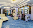 Suprafata locuibila foarte mare fata de imobilele din zona este dispusa astfel: zona de vestibul principal cu bucatarie si un mic living, cu acces catre salonul principal, mobilat si decorat in stil British, un fel de orangerie cu semineu.