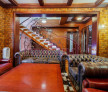 Din zona salonului stil British se acceseaza curtea interioara si garajul si exista si o alta scara care duce catre etaj.