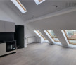 Mansarda spatioasa cu o buctarie utilata si un dormitor partial mobilat , cu priveliste de 360 de grade a centrului Brasovului.