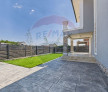 Curtea este generoasă și ușor de întreținut, cu gazon verde și gard modern, oferind spațiu suficient pentru relaxare, grătar sau loc de joacă pentru copii