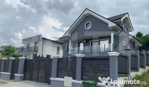 Blitz vă oferă spre vânzare în exclusivitate, o vilă ultrafinisată, ideală pentru o familie numeroasă. Casa a fost edificată în anul 2021, pentru care s-au folosit doar materiale de calitate excepțională, uși și parchet din lemn masiv, importate în cea mai mare parte din Marea Britanie. Imobilul desfășurat pe 3 niveluri, D+P+M are o suprafață extrem de generoasă, de 325 mp utili, se vinde complet mobilat și utilat, fiind compartimentat astfel: