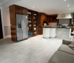 - Etaj un living generos cu băcătărie open-space, cu mobilă la comandă din lemn masiv esență nuc, complet utilată cu electrocasnice de ultimă generație Miele/Smeg/Samsung în garanție, hol, baie, dormitor, 2 camere și balcon de 8mp.