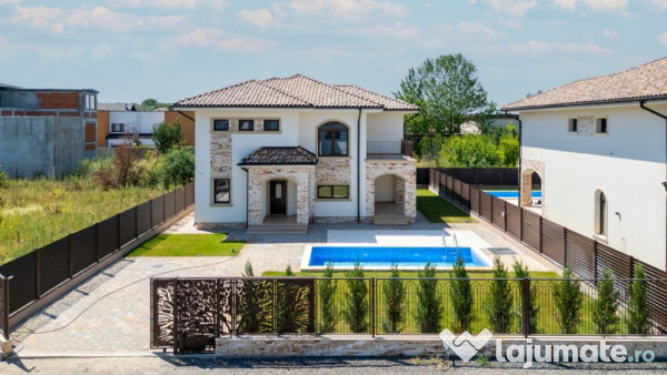 Va prezint o proprietate impecabila cu vedere la lac si padure, pe strada Laguna albastra, vecinatati deosebite, cu acces din Laguna Albastra, ce beneficiaza de piscina si finisaje de lux. Curtea este amenajata integral cu rulouri din gazon, sistem de irigatii, o proprietate de top intr-una din cele mai apreciate zone din Corbeanca- Laguna Albastra.