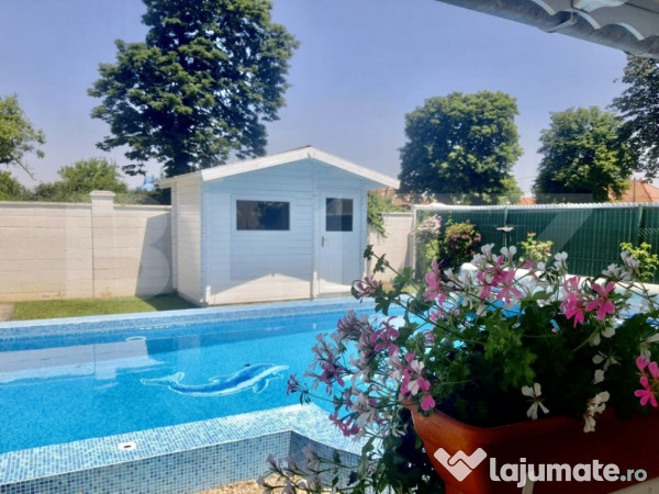 ????♂️ Piscină exterioară 10x5 m, încălzită cu panouri solare montate pe garaj