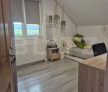 Blitz va ofera spre vanzare o vila cu priveliste deosebita in Livezeni, zona livezii. Proprietatea este dispusa pe doua nivele, la parter gasim un living generos cu bucatarie open space, o baie, garaj si doua terase generoase iar la etaj gasim 3 dormitoare si o baie dotata cu cada si cabina de dus. La subsol gasim si o pivnita. In curtea casei gasim si o anexa de depozitare generoasa si o copertina auto pentru doua masini. Casa este dotata cu panouri fotovoltaice care genereaza necesarul de energie al casei. Incalzirea se face cu centrala termica pe gaz dar dispune si de un semineu tip soba ideal pentru lunile racoroase. Curtea este amenajata cu vegetatie decorativa si pomi fructiferi.