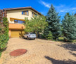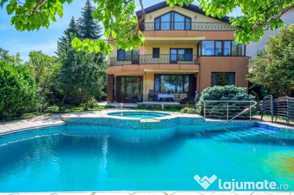 Piscina exterioară, placată cu mozaic și încălzită, alături de foișorul de vară, exchipat cu o bucătărie exterioară și magazia, însumează aprox 100 mp și adaugă un plus de eleganță curții. Grădina este matură, iar fiecare colț a fost atent gândit de un peisagist, rezultând un spațiu spectaculos, cu pomi fructiferi și arbuști ornamentali. Vila dispune și de o bașă de colectare a apei, ideală pentru irigarea grădinii.