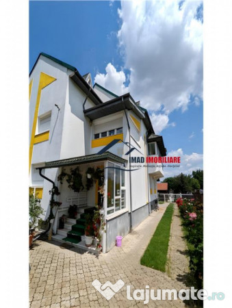 Spatiu interior generos de aproximativ 950 mp construiti - 830 utili, inteligent compartimentat pentru a oferi intimitate, confort si functionalitate pentru o familie numeroasa sau pentru transformare in pensiune/boutique hotel.