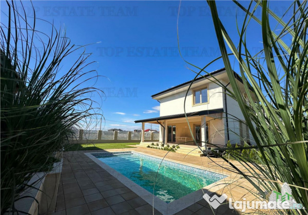 Constructie solida din 2024 pe stalpi beton cu 8 bare fier caramida porotherm, 2 placi de beton (exista poze din stadiile de constructie). Termopane 7 camere tripan Salamander. Pervaze placate cu piatra naturala. Piscina exterioara 21mp.