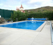 Exteriorul completează perfect imaginea. Piscina placată cu mozaic vă invită la relaxare în zilele însorite, iar curtea oferă intimitate și un cadru ideal pentru momente petrecute în aer liber împreună cu familia și cei dragi.