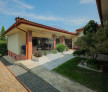 Stilul arhitectural, finisajul exterior, culorile și materialele folosite și, nu în ultimul rând, amenajarea spațiului exterior te duc cu gândul la frumoasele vile de pe dealurile Toscanei.