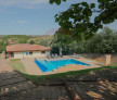Proprietatea se întinde pe un domeniu cu o suprafață de 3400 mp. Terenul, cu o ușoară înclinație specifică zonei de dealuri, a fost terasat și împărțit pe 3 paliere, pe fiecare dintre acestea regăsind: o vilă de tip mediteranean pe 2 niveluri, o piscină, respectiv o filigorie.