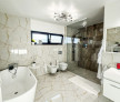 Dotări premium: încălzire în pardoseală, sisteme smart-home, terasă acoperită, balcon elegant cu balustradă din sticlă securizată, piscină exterioară supraterană 7×3 m.