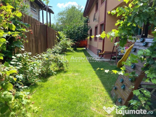 Gradina este dotata cu foisor, diversi pomi si arbusti pentru a oferi un ambient placut.
