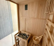 Construcția este realizată din cărămidă, izolată cu polistiren de 20 cm. Beneficiază de tâmplărie Alumil, parchet triplu stratificat Herringbone, centrală termică Viessmann, uși interioare Pinum și Filomuro, scări din granit și marmură, și saună finlandeză Sanotechnik la etajul 2.