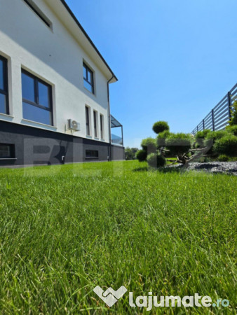 Piscină exterioara cu dus; Zonă de spa & fitness, cu saună uscată si cada cu hidromasaj; curte superba amenajata profesionist cu gazon si sezlonguri; Foișor modern cu grătar pentru seri relaxante; Terasă acoperită, ideală pentru momente în aer liber, indiferent de vreme.