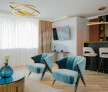 Fiecare cameră poartă amprenta viziunii Primera Interiors, unde designul, materialele și detaliile decorative creează un ambient armonios, elegant și funcțional. Mobilierul Eichholtz și Richmond Interiors oferă coerență și rafinament, completate de textile fine și candelabre statement. Sistemul de iluminat, conceput profesionist, echilibrează lumina naturală cu cea artificială, punând în valoare texturile și volumele interioare.