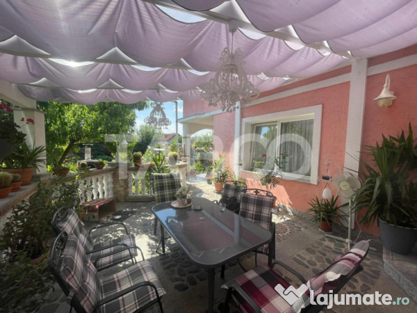 Proprietatea are o frumoasa terasa de 50 mp amenajata modern oferind o frumoasa priveliste catre gradina, lacul cu pesti exotici, frumoasa arcada de piatra si multe alte plante ornamentale care transforma gradina intr-un loc minunat de relaxare dupa cum se vede in poze.