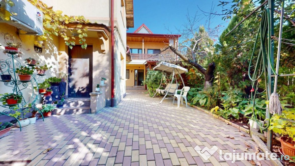 Intrarea principală, prin care se face accesul în livingul principal și către etaj, a doua intrare, ce duce către o zonă separată a casei – un apartament de 2 camere, cu bucătărie și baie proprie, ideal pentru oaspeți sau membri ai familiei care doresc intimitate.