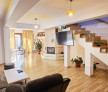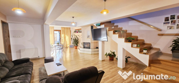 Locuința dispune de 5 dormitoare luminoase și 4 băi moderne, un living generos unde toată familia se poate reuni, dar și o bucătărie spațioasă cu zonă de dining, completată de un spațiu adițional pentru gătit. Organizarea este practică și funcțională: există cămară, debara, un beci încăpător, mansardă și spații tehnice dedicate pentru spălătorie și centrale.