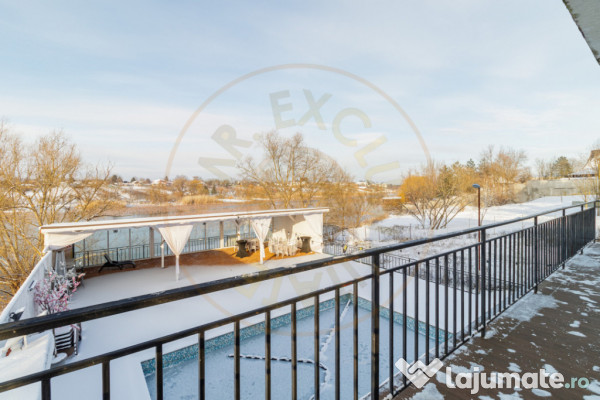 Ai piscină interioară și piscină exterioară. Ai terasă generoasă și vedere directă către lac. Ai ponton, un detaliu care schimbă complet stilul de viață și poziționarea proprietății.