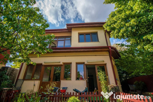 Vila P+1+M +Terasa 30 mp inchisa,2 bucatarii +4 bai, 5 camere,1 balcon,curte pavata cu pavele,2 locuri parcare,,acoperis tigla,anvelopata,vopsita cu lavabila structurata,centrala termica,2 ideala pentru locuit .