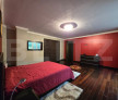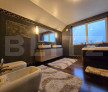 Etaj: dormitor matrimonial cu dressing, baia matrimoniala cu jacuzzi este lucrata la cel mai inalt nivel de lux cu foita si praf de aur pe pereti si piele de iguana pe dulapul de la chiuveta , încă un dormitor, plus o baie mare.