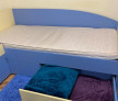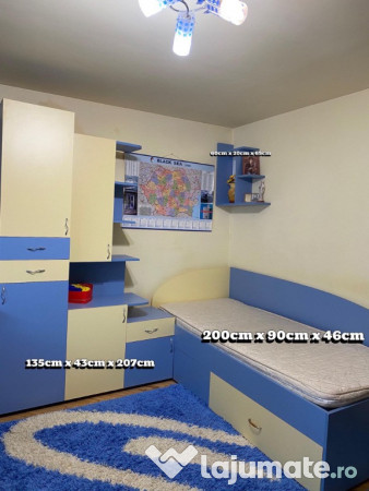 Vind mobila formată din cîte două piese după cum urmeaza : Dulapuri, paturi ,noptiere ,masă de birou ,etajere pe perete ,covoare in stare perfecta curate fără urme de lovituri sau pete pe culoare albastra