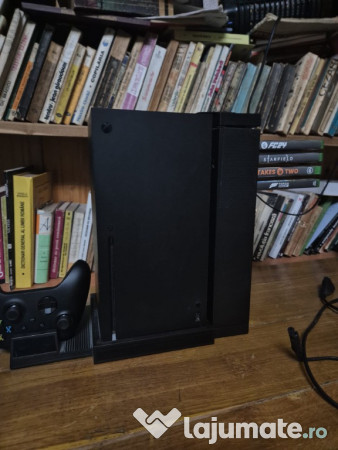 Consola Xbox series X cu un controller plus 4 jocuri cu cd plus statie de încărcare pentru un controler plus suport pentru CD uri plus cablu de alimentare și HDMI