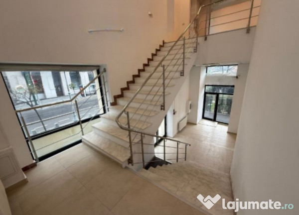 Imobiliar Expert Grup va propune spre inchiriere spatiu comercial in suprafata de 217 mp situat in zona Piata Victoriei., Spatiul este compus din parter in suprafata de 25 mp si Etaj 1 in suprafata de 192 mp, vitrin a este de aprox. 8ml. Totodata dispune de apa, canalizare, curent. Ideal pentru bistro, restaurant, cafenea, etc.