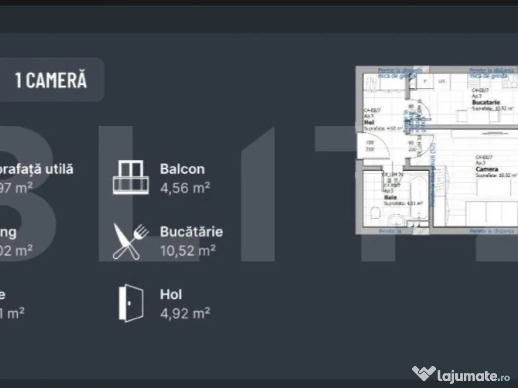 Blitz vă prezintă un apartament modern și elegant, perfect pentru persoanele în căutarea unui cămin confortabil și bine poziționat. Acest apartament cu 1 cameră, având o suprafață utilă de 38,54mp și un balcon de 3.54 mp, se remarcă prin finisaje premium și dotări de înaltă calitate. Între caracteristicile deosebite ale apartamentului se numără: Centrala proprie – pentru confortul dumneavoastră termic și economie la facturi. Aer condiționat – pentru o atmosferă plăcută în orice sezon. Încălzire în pardoseală – o soluție modernă și eficientă pentru încălzirea uniformă a locuinței. Finisaje premium – fiecare detaliu este realizat cu atenție pentru a oferi un ambient elegant și rafinat. Clădire certificată „Clasa A” – construirea la cele mai înalte standarde, garantând performanță energetică superioară și siguranță în exploatare. Proiectul este realizat la cele mai mari standarde de calitate, iar amplasarea într-o zonă accesibilă și liniștită face din acest apartament o oportunitate excelentă de a investi într-o locuință modernă și confortabilă. Nu ratați ocazia de a deveni proprietarul acestui apartament deosebit! Contactați Blitz pentru mai multe informații și pentru a programa o vizionare. Cod ofertă / ID BLITZ: P142582 Id intern: P142582 Confort: 1 Tip imobil: Bloc de apartamente Număr Băi: 1
